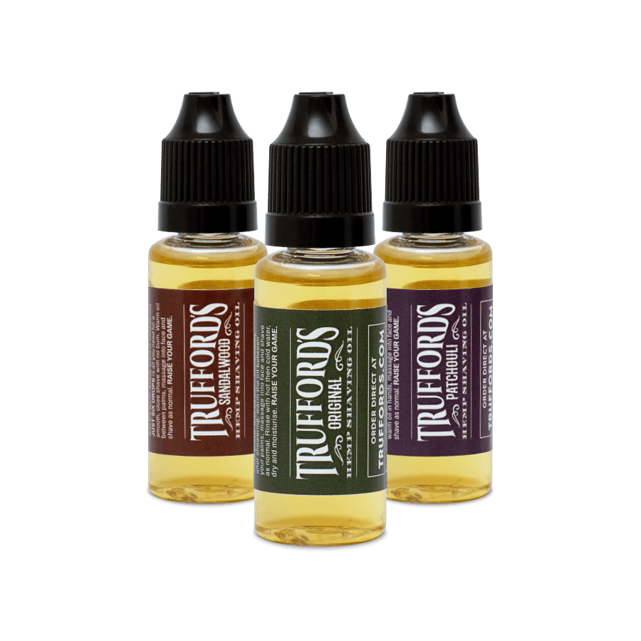 Our flagship product, Trufford’s Original Hemp Shaving Oil, is formulated with cold‑pressed hemp seed oil to nourish your skin and support a smooth, comfortable shave. Unlike foams and gels, our oil provides a clear view of the area you are shaving, making it ideal for beard shaping, moustache maintenance and clean‑cut styles. The lightweight formula reduces razor burn, irritation and redness, helping your skin stay soft and supple throughout the day.